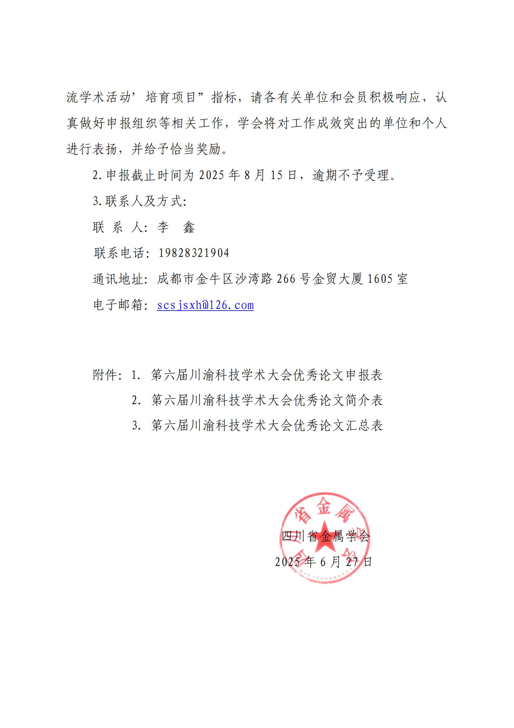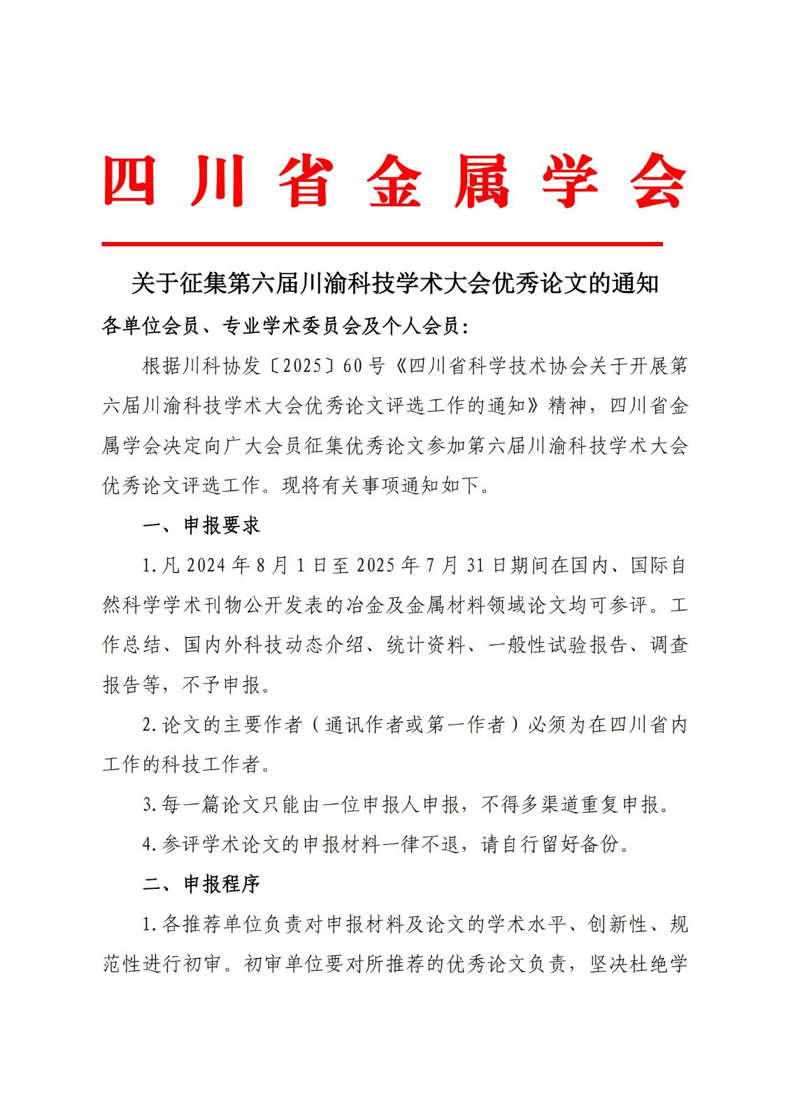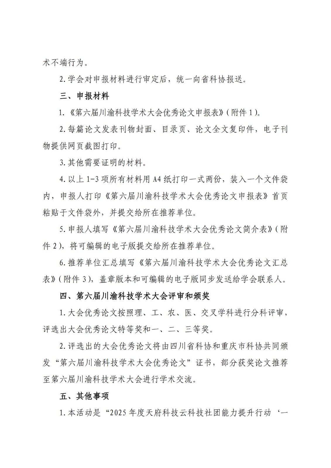 关于征集第六届川渝科技学术大会优秀论文的通知