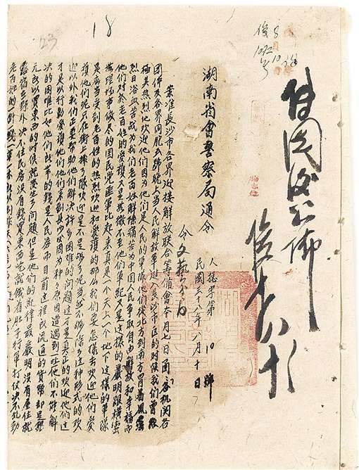当时,湖南省会警察局局长刘人爵专门签署了《准备迎接解放军进城的通令》,高度赞扬人民解放军的优良作风,表达迎接解放军入城、希望早日实现全中国解放的迫切心情,号召全体市民拥护和爱戴人民的军队。