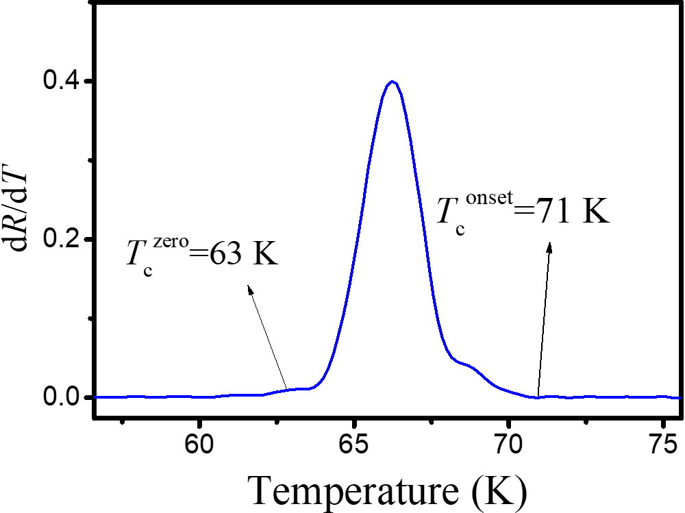 图2、根据电阻对温度的微分定义起始、中点和零电阻温度。